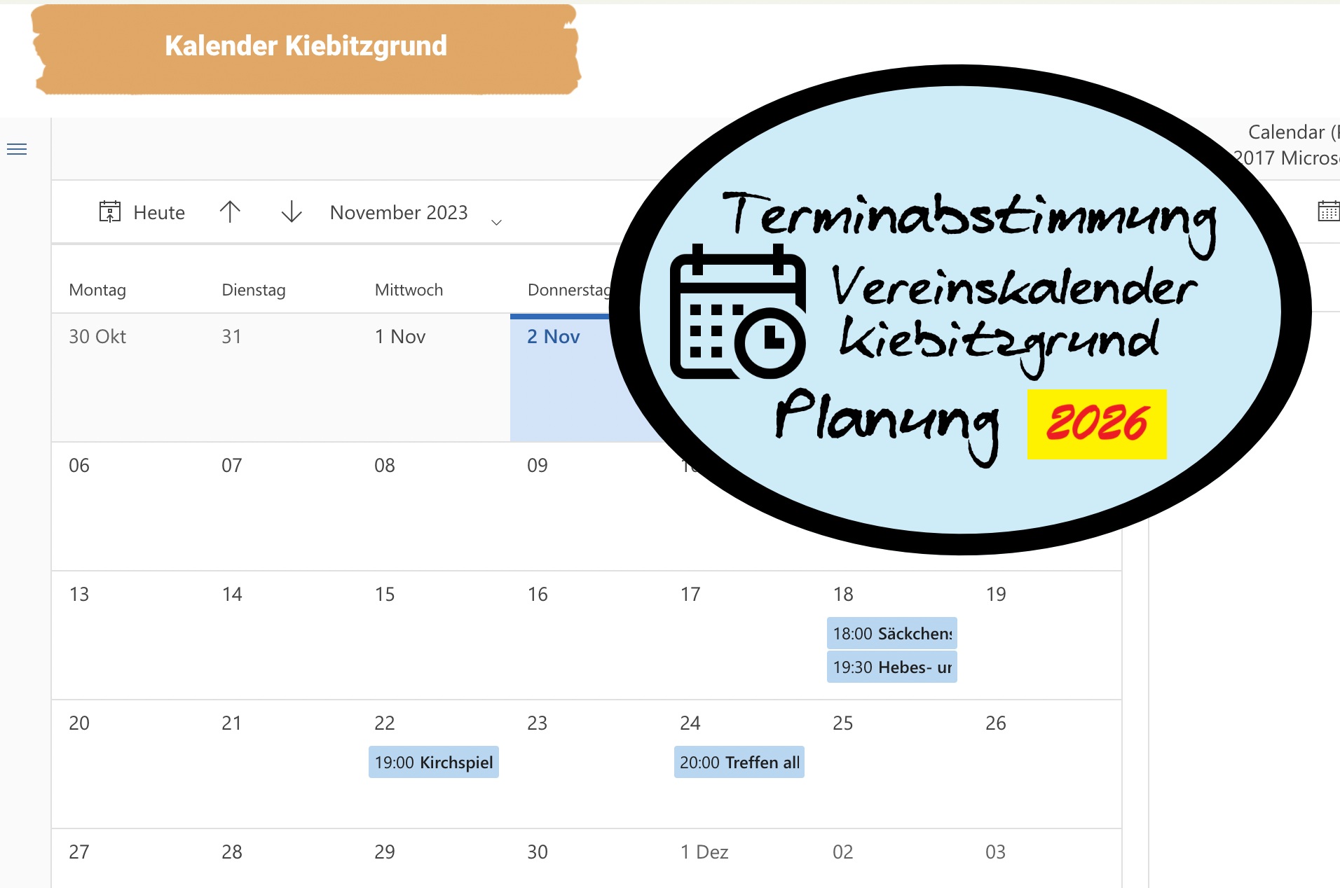 News: Treffen Vereinskalender Kiebitzgrund für 2026