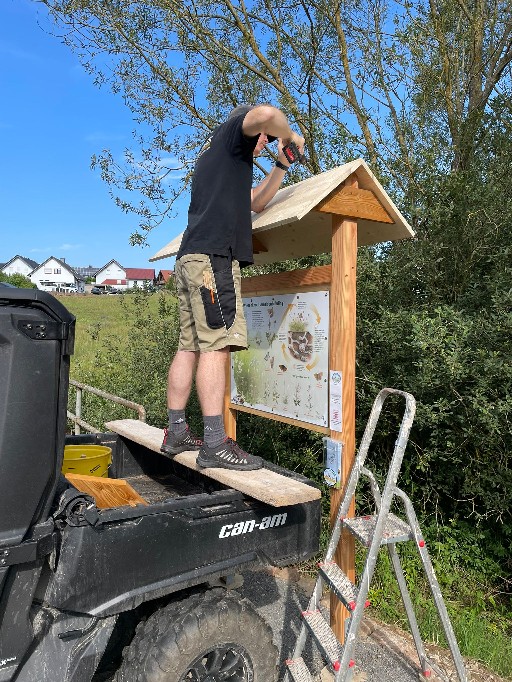 In Eigenleistung erweitert der Verein die Stellfläche für die Bildtafel. Hierzu musste der Hang neu abgefangen werden um ausreichend Platz außerhalb der Verkehrsfläche zur Betrachtung der Informationen zu gewinnen. Steine und Schotter stellte die Marktgemeinde Burghaun unentgeltlich zur Verfügung. Die Finanzierung sollte im Rahmen der Artenschutzmaßnahme von der Oberen Naturschutzbehörde des Regierungspräsidiums Kassel erfolgen.